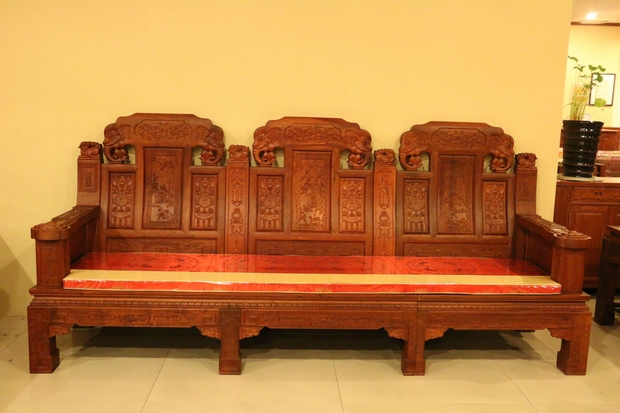 大家好,今天我們福林堂紅木要為大家介紹的這一款沙發(fā),其名字內(nèi)容較為通俗意賅——“豪華如意”?!昂廊A”之意:一是代表其所選用材質(zhì)——緬花的珍貴,二是因?yàn)槟歉∪A鐫秀裝點(diǎn)紋飾的富麗;而如意則指的是這些紋飾在其內(nèi)部所承載的深厚寓意,這其中包含有喻以吉祥富貴吸財(cái)之意的大象紋、代表祥和福瑞之意的麒麟紋、還有寓帶五福象征不老不衰的梅花紋、以及擁有幸福之意的蝙蝠紋、銅錢、魚紋、銅鈴紋飾等等,它們以物喻情,這也是紅木家具不同于多數(shù)一般類普通家具的重要標(biāo)志所在,可以說,它們已經(jīng)不單單是一件生活中的家具品那么簡單,這其中也包含了所使用主人內(nèi)在的精神世界追求和意志情感寄托之需要。